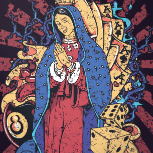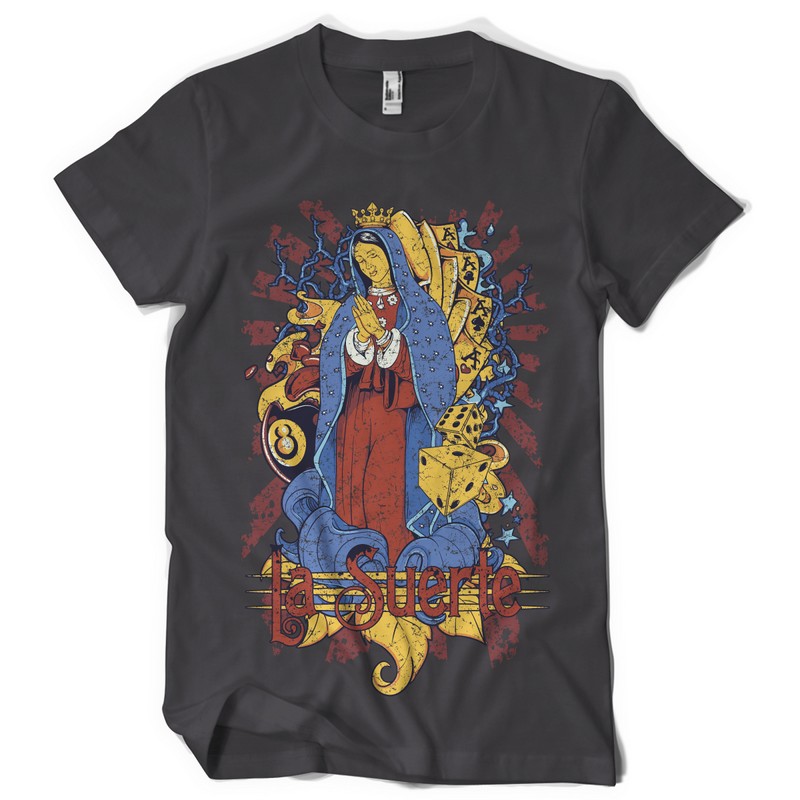 La suerte digital design template in vector format, featuring detailed gambler Saint Maria now available for Adobe Illustrator, Adobe Photoshop and Corel Draw and can be used for digital printing and screenprinting .