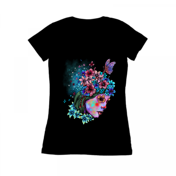 Lady and flower design is an illustration design. These files include PSD and PNG with a transparent background. Perfect for digital printing and screen printing.