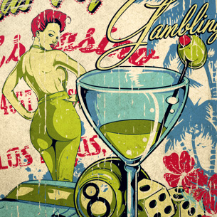 Las Vegas T-shirt design template in vector format, featuring detailed las vegas girl and cocktail now available for Adobe Illustrator, Adobe Photoshop and Corel Draw and can be used for digital printing and screenprinting .