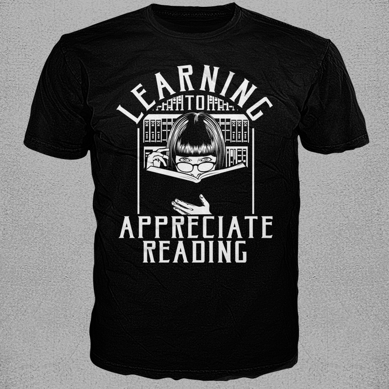 Colors and size in "Learning to Appreciate Reading" is easy editable for any dark colors shirt.Design compatible for screen printing and Direct to Garment (DTG) and PNG for simple anything digital print.
