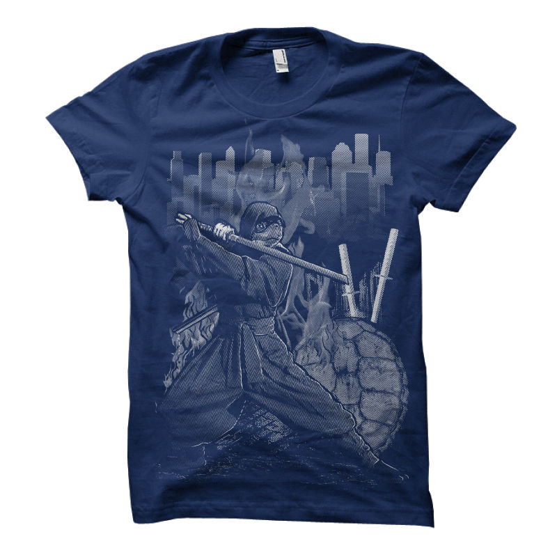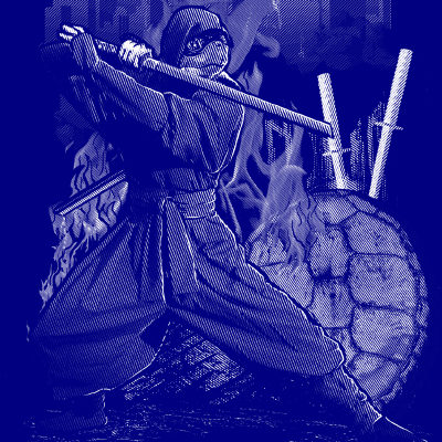 A fearless leader, his favorite color is blue and he uses 2 ninja swords. The design is a unique interpretation on the teenage mutant ninja theme and it features a poster-type rendition of Leonardo. The design is a one color (easy and cheap to)print, 350 dpi.