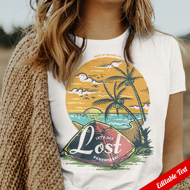 Vector illustration of beach camp with beautiful scenery landscape. Ready to print on t-shirt.