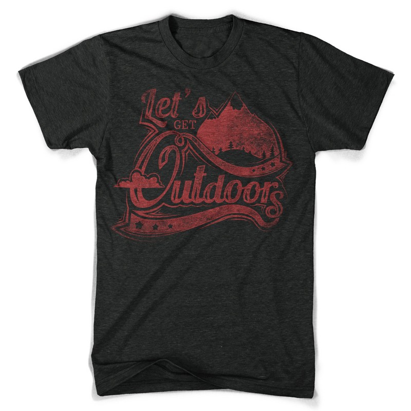 Let's get outdoors graphic design template in vector format, featuring detailed nature message now available for Adobe Illustrator, Adobe Photoshop and Corel Draw and can be used for digital printing and screenprinting .