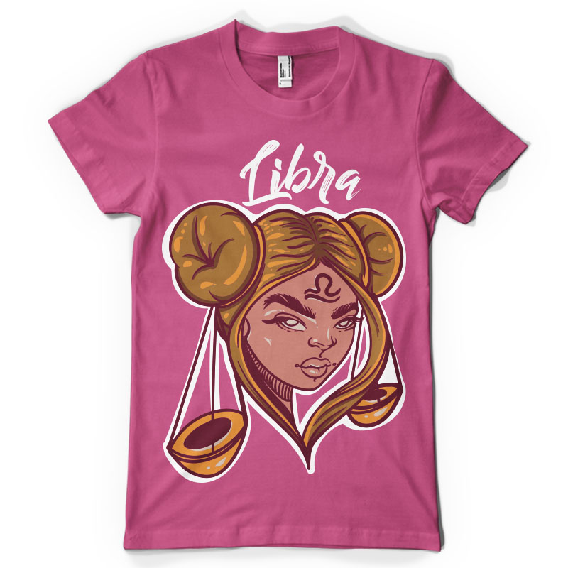 Libra- design featuring detailed portrait of a girl. This illustration was made in Ilustrator, the source file is avaible in PNG,AI,EPS,SVG format and can be used for screenprinting , digital print and tshirt design. Not editable text.