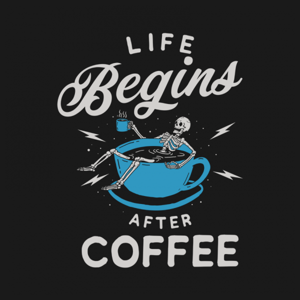 This design “ life begins after coffee ” is made in Adobe Ilustrator is ready for print.