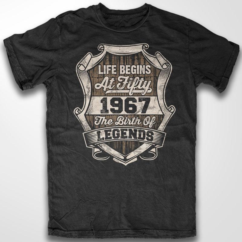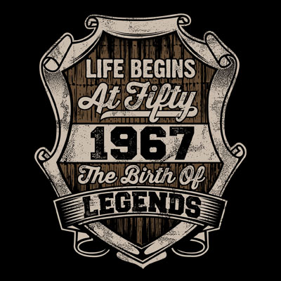 "Life begins at fifty 1967 the birth of legends" Design Created with Corel X6 and Adobe illustrator,two color Design, Can be used for Digital printing and screen printing.enjoy!