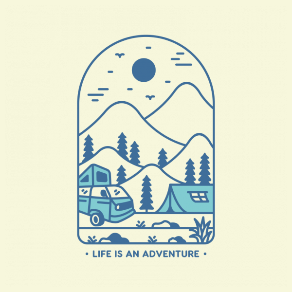 Life is an Adventure 3 is a monoline illustration that is suitable for apparel or merchandise about nature, outdoors, trip, travel, adventure, journey, camping, holiday, vacation, camper, van, wanderlust, wildlife, caravan, quotes.