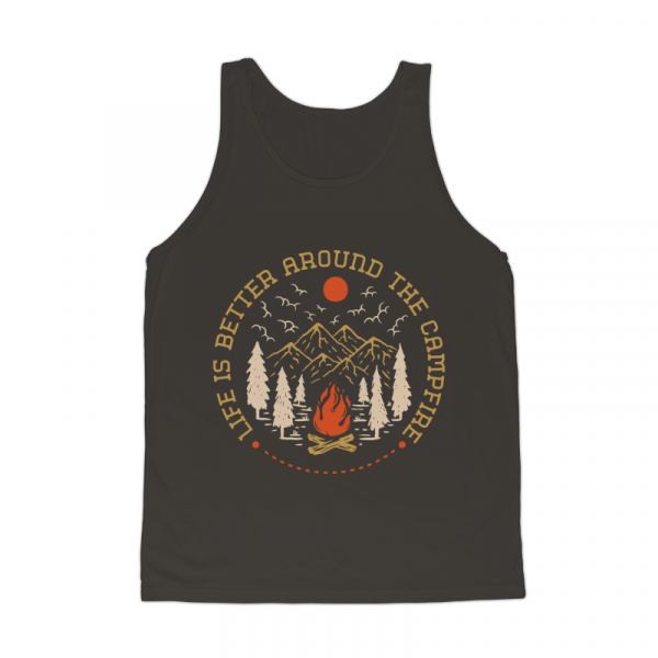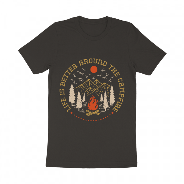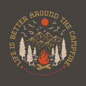 Life is Better Around The Campfire is a vintage illustration that is suitable for t-shirts, jackets, or merchandise with the theme of camp, camping, nature, outdoors, campfire, bonfire, adventure, hiking, mountain, national park, wildlife, wanderlust, tent, forest, vintage.