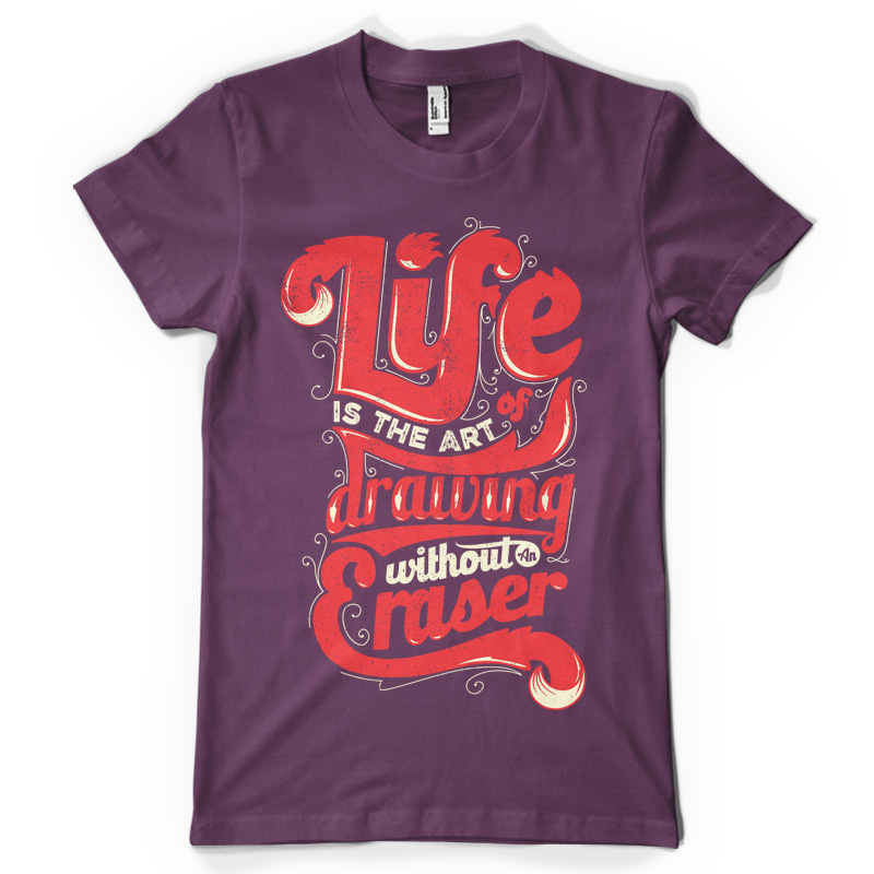 "Life is drawing" T-shirt design featuring typography style quote, with distressed details. The files available are suitable for Adobe Illustrator, Adobe Photoshop and Corel Draw and can be used for digital printing and screenprinting.
