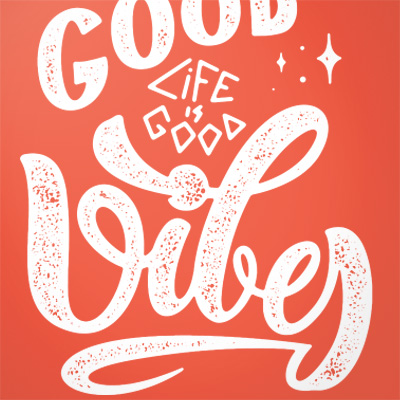 "Life is Good" T-shirt design featuring typography style quote, with distressed details. The files available are suitable for Adobe Illustrator and Adobe Photoshop and can be used for digital printing and screenprinting.