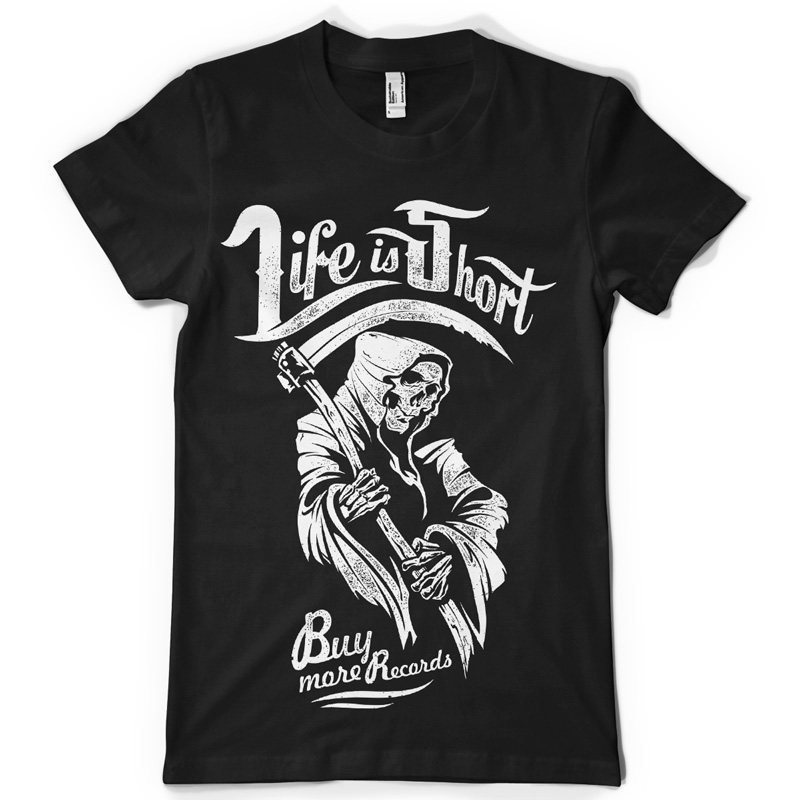 Life is Short graphic template in vector format, featuring detailed grim reaper now available for Adobe Illustrator, Adobe Photoshop and Corel Draw and can be used for digital printing and screenprinting ..