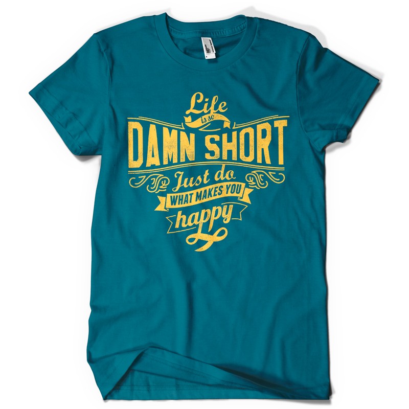 Life is so damn short graphic design template in vector format, featuring detailed positive message now available for Adobe Illustrator, Adobe Photoshop and Corel Draw and can be used for digital printing and screenprinting .