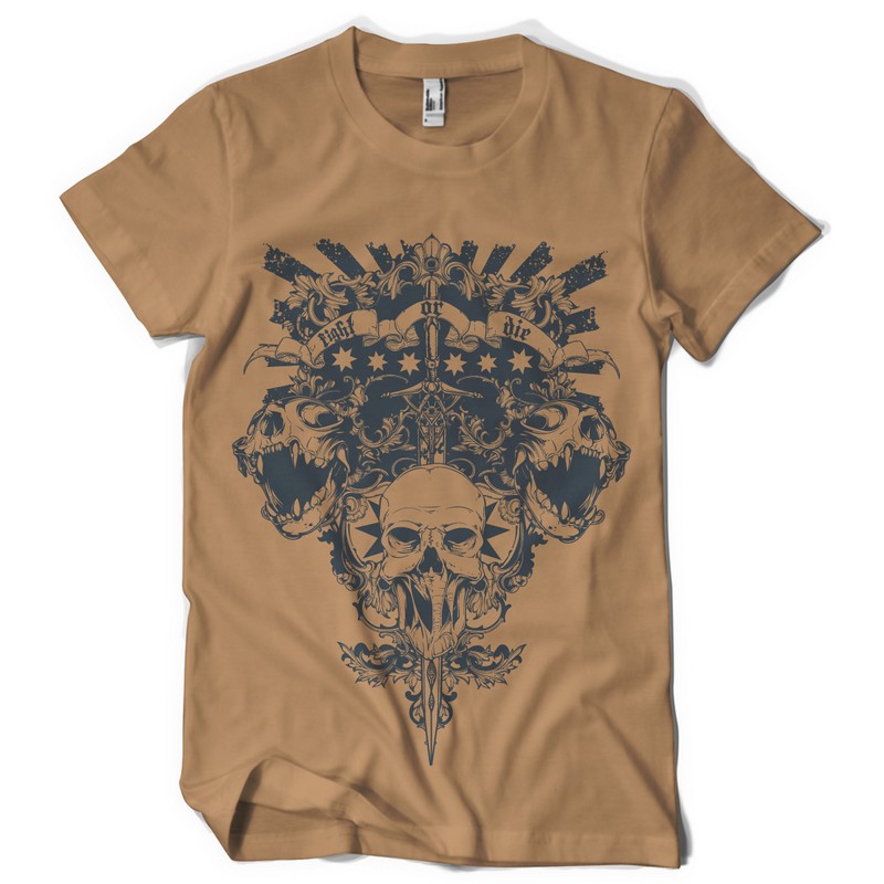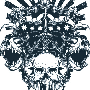 Light or die digital design template in vector format, featuring detailed stabbed skull and screaming skulls now available for Adobe Illustrator, Adobe Photoshop and Corel Draw and can be used for digital printing and screenprinting .