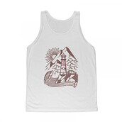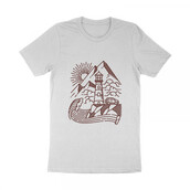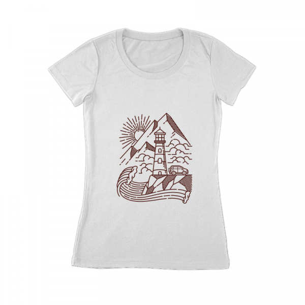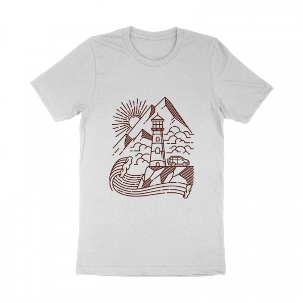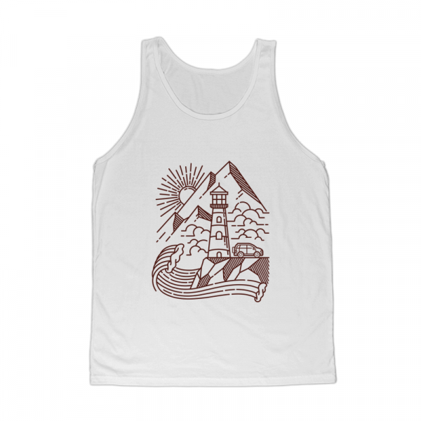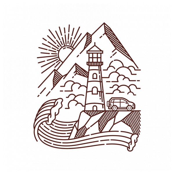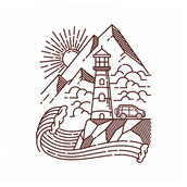 Lighthouse and mountain line illustration