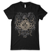 Like moths to flames printed t-shirt features a detailed screen print of horned skull and an eagle now available for Adobe Illustrator, Adobe Photoshop and Corel Draw and can be used for digital printing and screenprinting .