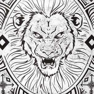 Lion cast graphic design template in vector format, featuring detailed wild beast lion now available for Adobe Illustrator, Adobe Photoshop and Corel Draw and can be used for digital printing and screenprinting .