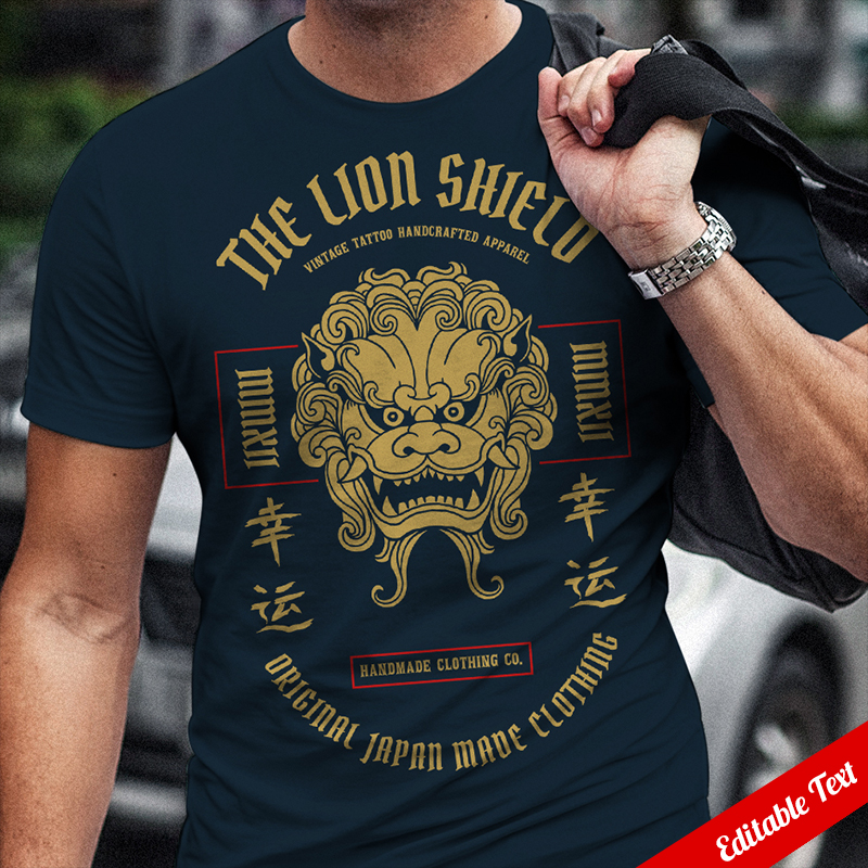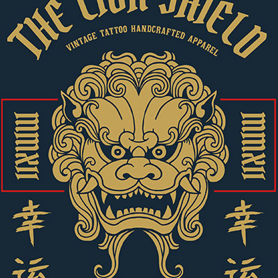 Vector illustration of lion heraldry crest with asia style pattern. Ready to print on t-shirt.