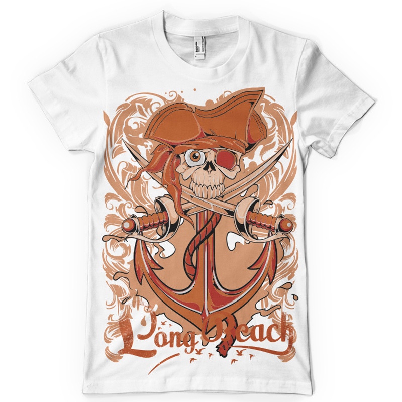 Long Beach printed t-shirt features a detailed screen print of badass pirate is now available in EPS format file and can be used for digital printing and screenprinting . Ready to print or use in anything you want.