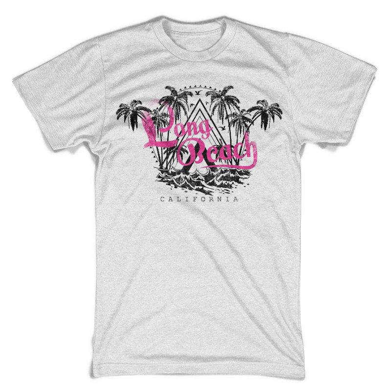 Long Beach graphic design template in vector format, featuring detailed summer beach now available for Adobe Illustrator, Adobe Photoshop and Corel Draw and can be used for digital printing and screenprinting .