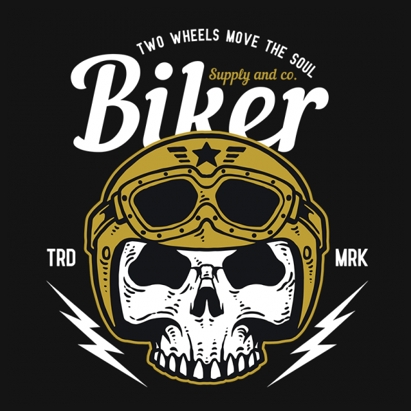 Vector illustration of skull wearing biker helmet custom motorcycle. Ready to print on t-shirt.