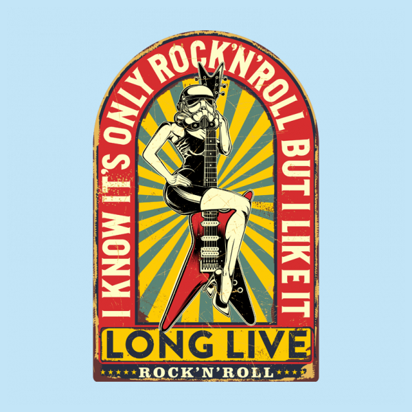 LONG LIVE ROCK'N'ROLL VINTAGE SIGNS T-Shirt was created with Corel Draw and Adobe illustrator, two color print, CDR,AI,PNG,EPS Can be used for digital printing and screen printing