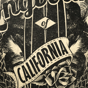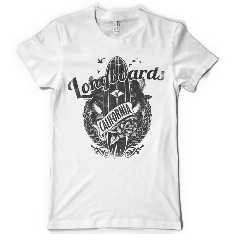 Longboards of California digital design template in vector format, featuring detailed surfboard now available for Adobe Illustrator, Adobe Photoshop and Corel Draw and can be used for digital printing and screenprinting .
