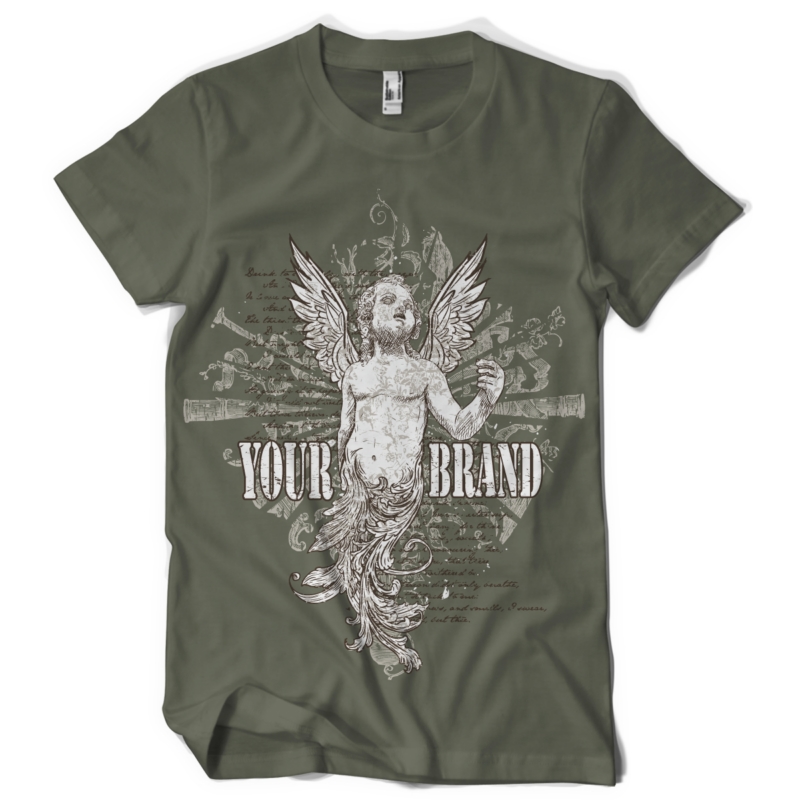 Angel with flourish details and text background is a digital design, easily to add your brand name.The file will be available in vector format for Adobe Illustrator, Adobe Photoshop and Corel Draw and can be used for digital printing and screenprinting .
