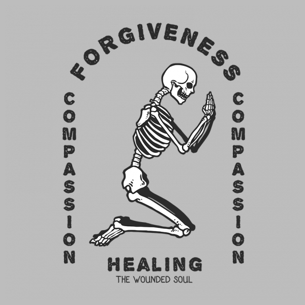 Vector illustration of skull praying for forgiveness. Ready to print on t-shirt.