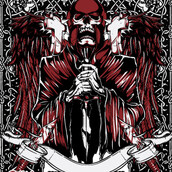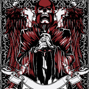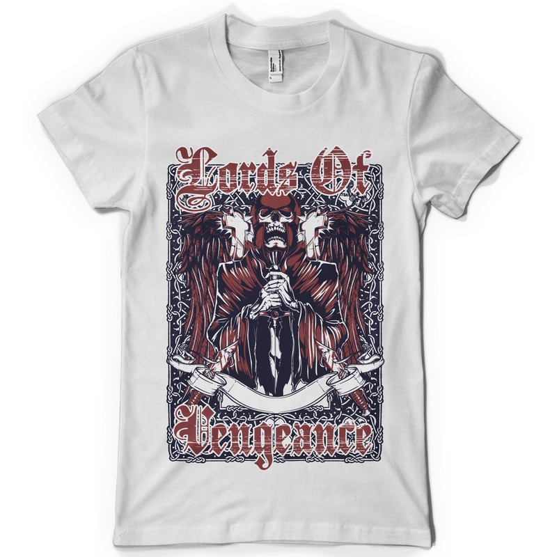 Graphic design featuring detailed skull revenge . Lords of Vengeance template is available in vector format and can be used for digital printing and screenprinting. The file will be available for Adobe Illustrator, Adobe Photoshop and Corel Draw.