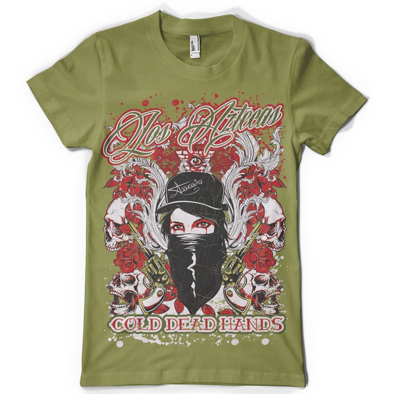 Digital design featuring detailed gangsta girl. Loz Aztecas template is available in vector format and can be used for digital printing and screenprinting. The file will be available for Adobe Illustrator, Adobe Photoshop and Corel Draw