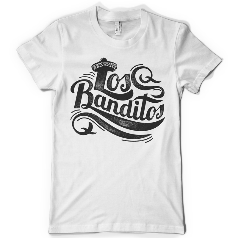 Los Banditos graphic design template in vector format, featuring detailed mexican typography message now available for Adobe Illustrator, Adobe Photoshop and Corel Draw and can be used for digital printing and screenprinting .