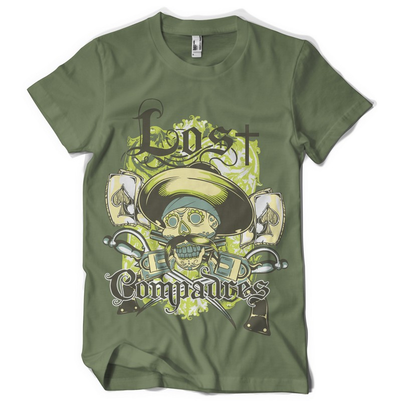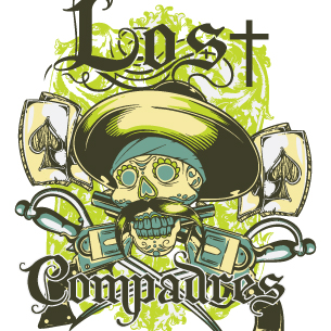 Lost compadres digital design template in vector format, featuring detailed mexican skull now available for Adobe Illustrator, Adobe Photoshop and Corel Draw and can be used for digital printing and screenprinting .