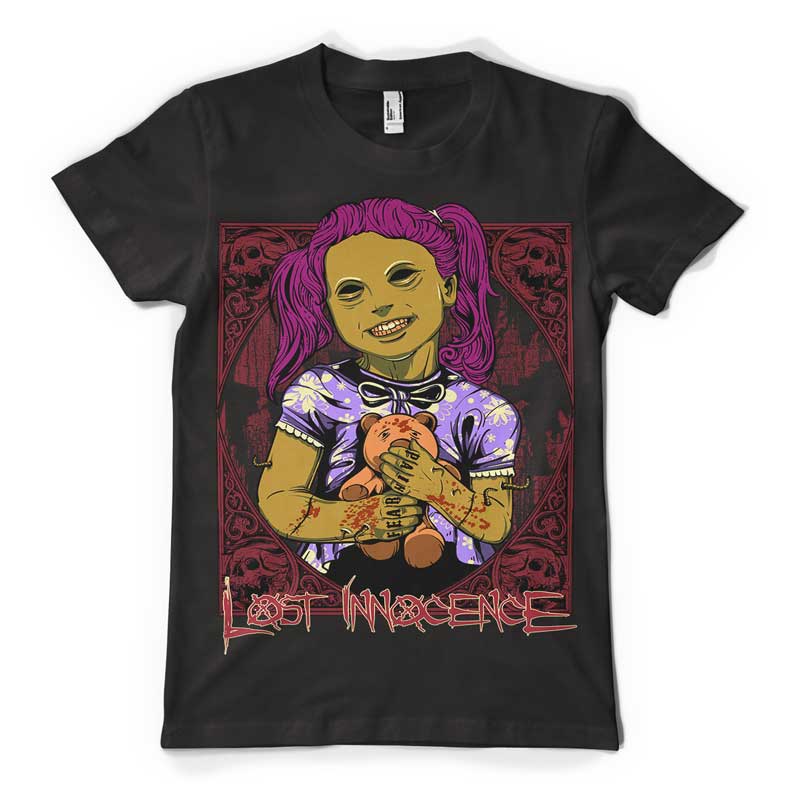 Lost t-shirt design features a detailed screen print of creepy zombie kid now available for Adobe Illustrator, Adobe Photoshop and Corel Draw and can be used for digital printing and screenprinting .