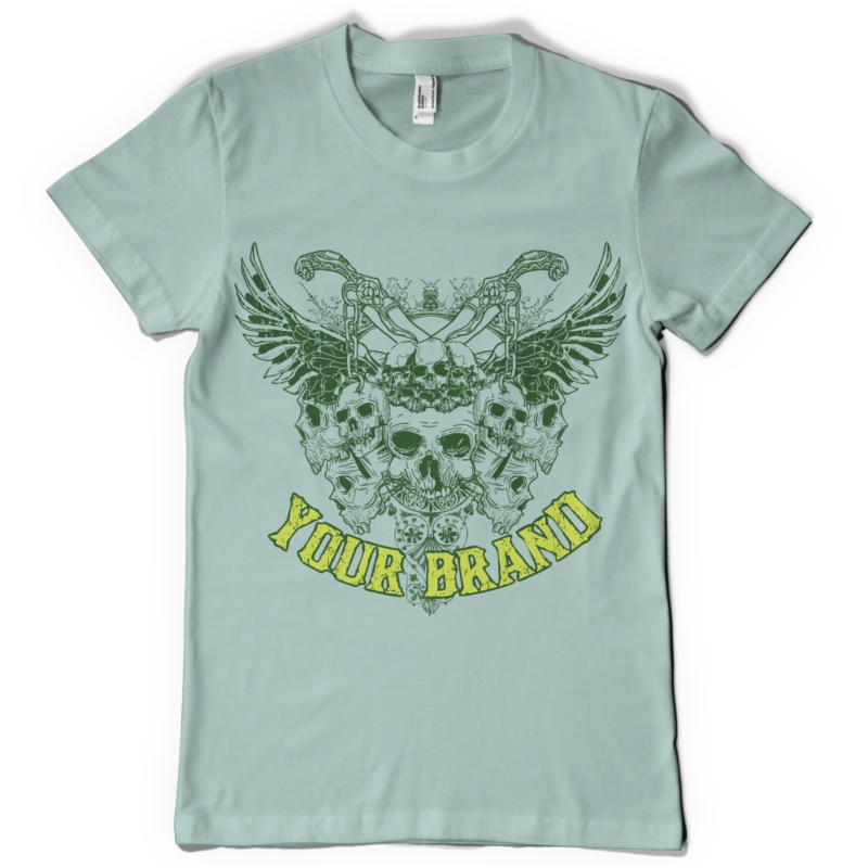 Lost souls is a digital artwork with a lot of skulls and elements of death easily for you to add your brand name.The t-shirt template will be available in vector format for Adobe Illustrator, Adobe Photoshop and Corel Draw and can be used for digital printing and screenprinting .