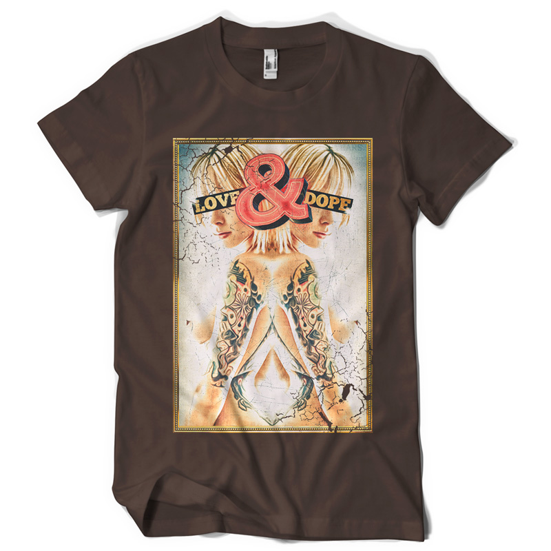 "love and dope" Artwork created in Adobe Photoshop. The file available for the client upon purchase and download are 1 layered file in TIFF (with transparency) format designed for DIRECT TO GARMENT printing. Also available upon request is 1 file in PDF format, layered, designed for the SCREEN PRINTING.