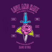 Vector illustration of dagger and rose vintage tattoo design with vibrant color palette. Ready to print on t-shirt.