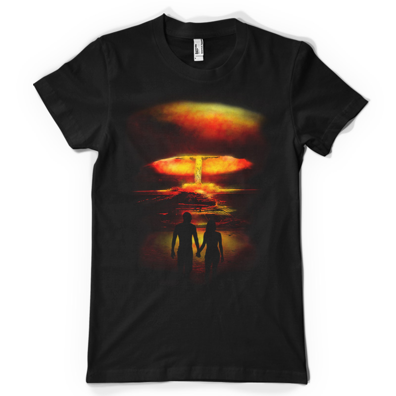 "Love and War" is a unique illustration of 2 loving couples watching a nuclear warfare that could end both of their lives but their love would stay the same forever. This unique design has its own twist of a love story. File contains a PSD file with 17 x 24 in size with 300 in dpi.