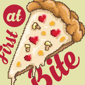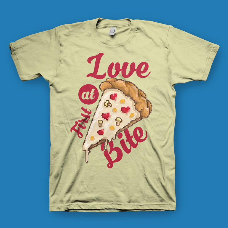 Love At First Bite. Inspired from the retro video game box art and classic popular video games in the 80's era mixed with pizza food illustration. Made with pixel art illustration.