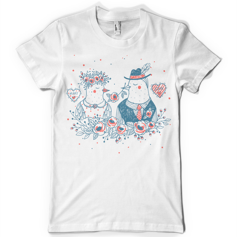 "Love Birds" t-shirt design. This image is a vector illustration and can be scaled to any size without loss of resolution. This image will download as a .eps file.