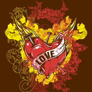 Love t-shirt design in vector format, featuring detailed hurted heart with nails now available for Adobe Illustrator, Adobe Photoshop and Corel Draw and can be used for digital printing and screenprinting .