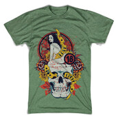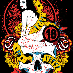 Love is cruel graphic design template in vector format, featuring detailed sexy girl on top of a skull now available for Adobe Illustrator, Adobe Photoshop and Corel Draw and can be used for digital printing and screenprinting .