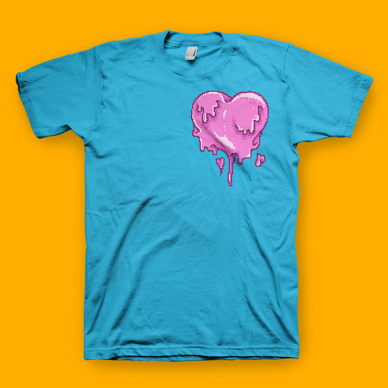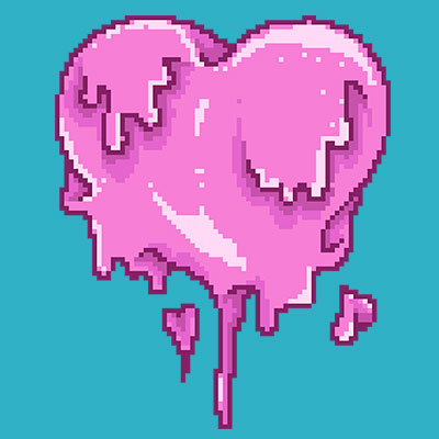 Love melt pixel art. Inspired from the retro video game box art and classic popular video games in the 80's era. Made with pixel art illustration.