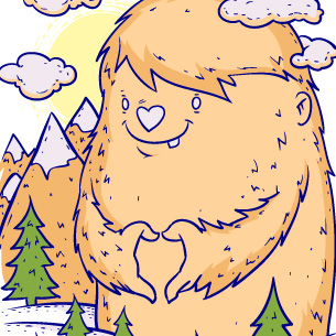 Giant hairy love monster on a forest background