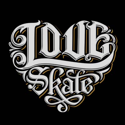 "Love Skate " Design Created with Corel X6 and Adobe illustrator, Two color design CDR, AI ( separated layers ) Can be used for digital printing and Screen printing.
