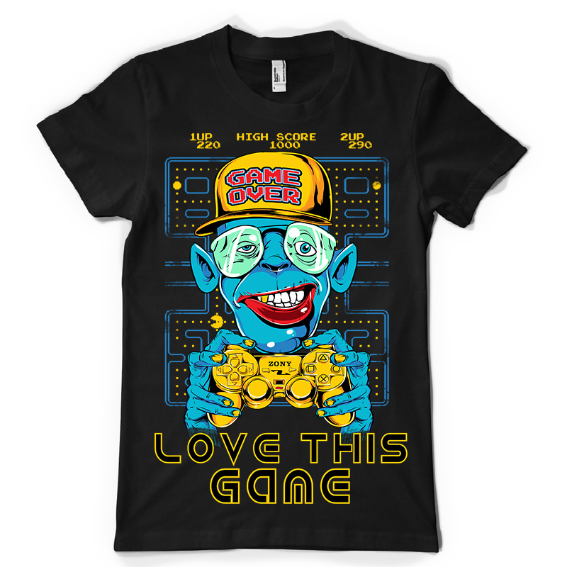 Love This Game t-shirt design features a detailed screen print of zombie player now available for Adobe Illustrator, Adobe Photoshop and Corel Draw and can be used for digital printing and screenprinting .