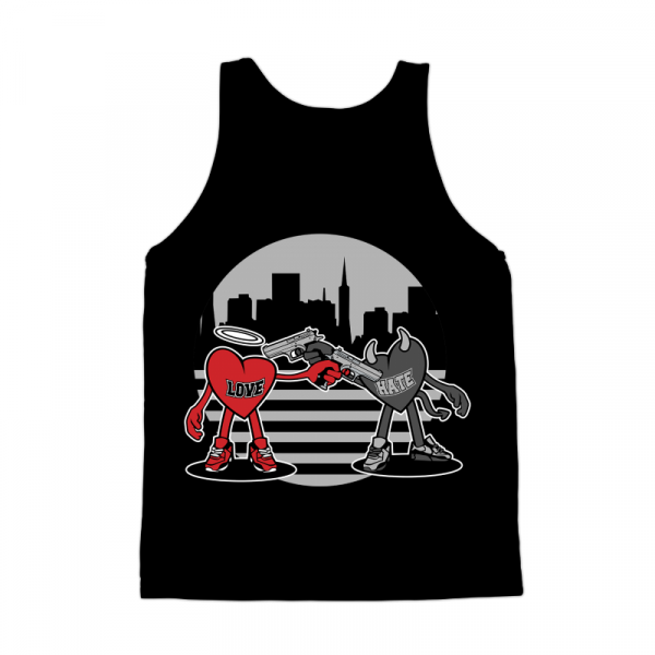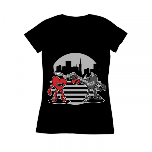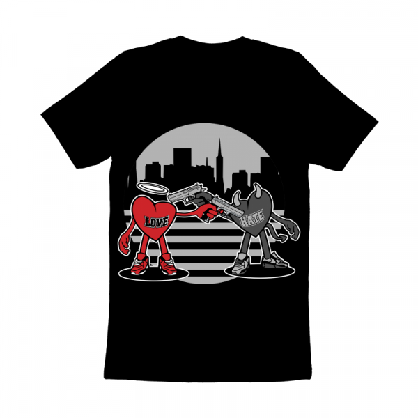 love vs hate shoot out Vector illustration tshirt design , 5 colors available on Corell Draw X4 file, Adobe illustrator file , EPS , Transparent Back Ground PNG file , PDF file its can be use for Digital printing and screen printing
