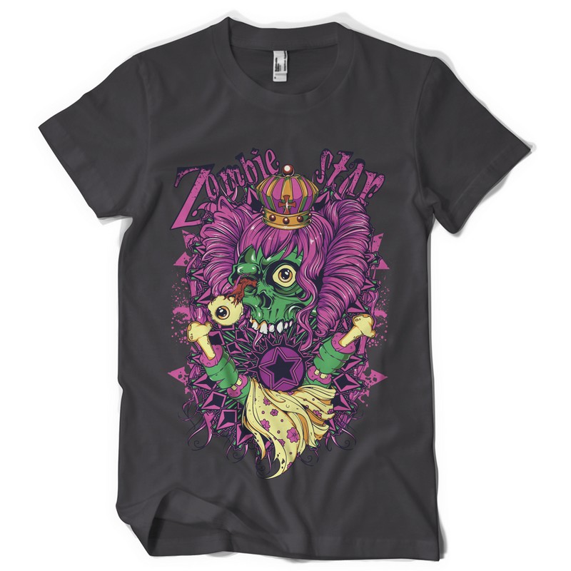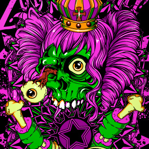 LSD Zombie design template in vector format, featuring detailed creepy zombie now available for Adobe Illustrator, Adobe Photoshop and Corel Draw and can be used for digital printing and screenprinting .