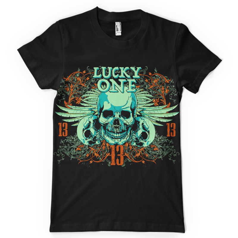 Lucky one printed t-shirt features a detailed screen print of winged death now available for Adobe Illustrator, Adobe Photoshop and Corel Draw and can be used for digital printing and screenprinting . Ready to print or use in anything you want.