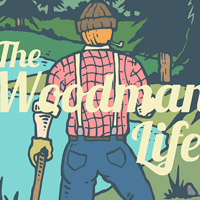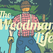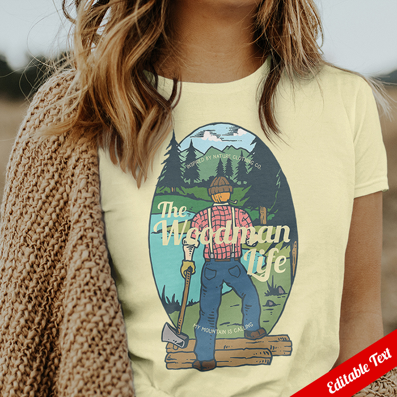 Vector illustration of a lumber man standing in the forest looking at the beautiful mountain scenery. Ready to print on t-shirt.