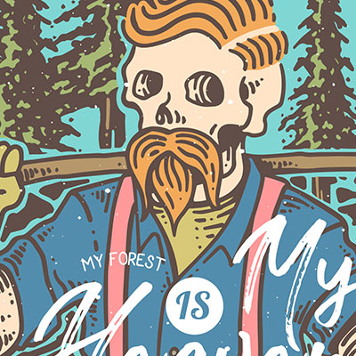 Vector illustration of lumberjack skull with masculine looking. Ready to print on t-shirt.